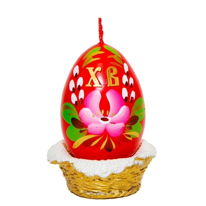 Пасхальная свеча "Пасхальное яйцо в лукошке" выполнена