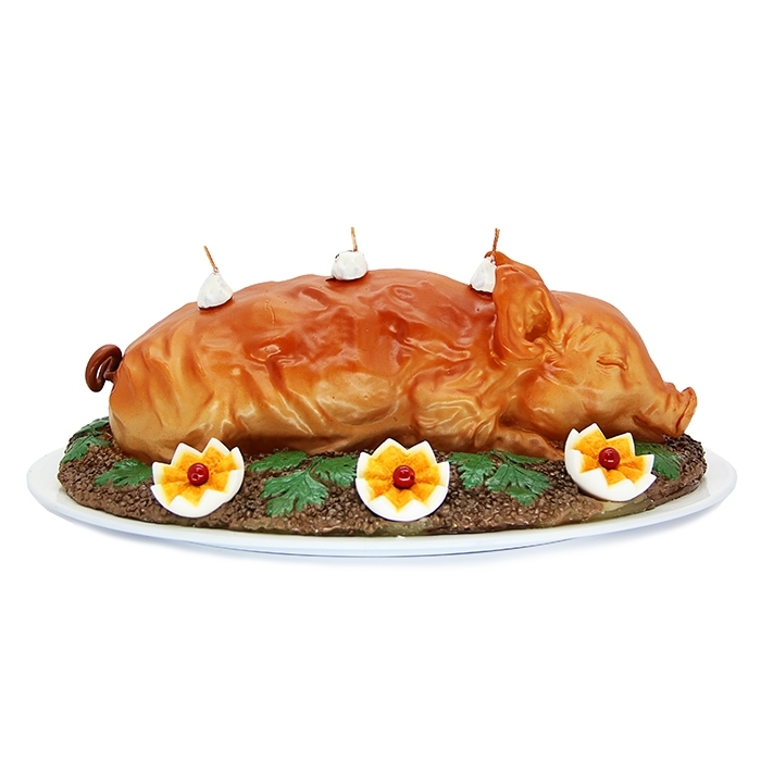 Декоративная свеча "Поросенок на блюде" выполнена из высококачественного сырья