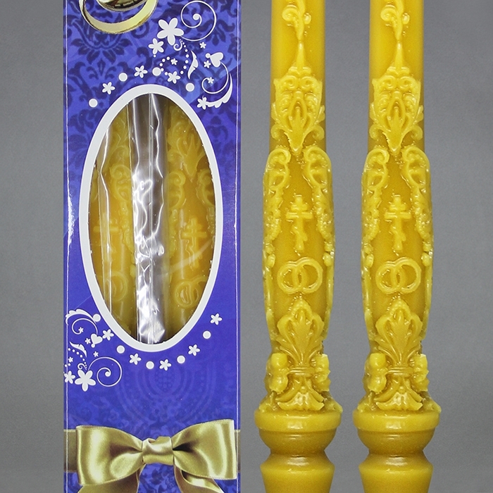 Венчальные свечи №2 малые (воскосодержащие) выполнена из высококачественного сырья